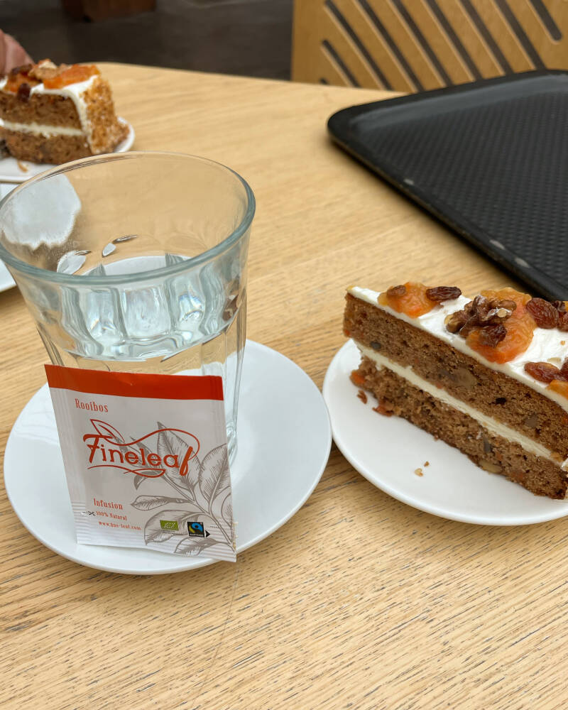 Een Rooibos op de overdekte binnenplaats van het museum met heerlijk gebak.