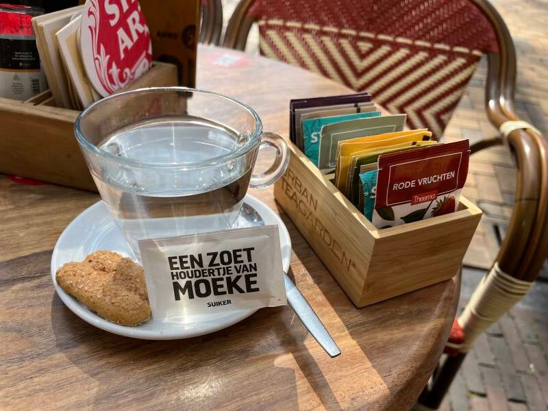 Een goede kwaliteit losse Rooibos op een terras naast de Nieuwe Kerk in het centrum van Delft.