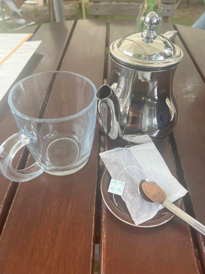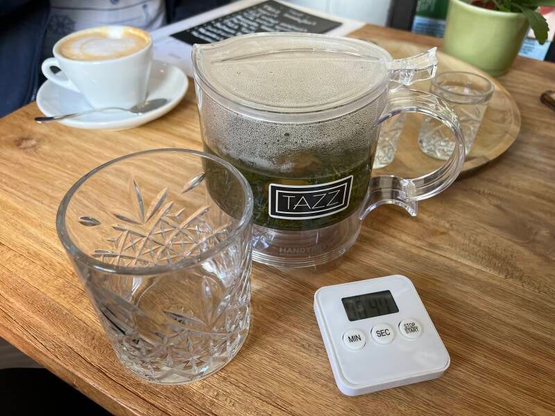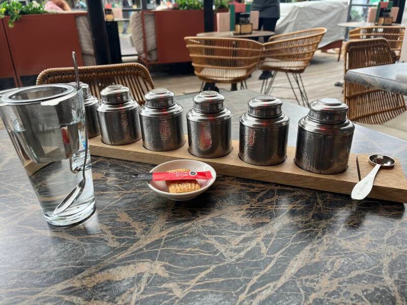 De losse Thee wordt geserveerd in een Teamaker. Het water is gefilterd en wordt op de juiste temperatuur opgeschonken en met een timer van 3 minuten op je tafeltje neergezet. Een heerlijke Bancha en een eigen mix van zwarte Thee geproefd. Super lekker!! Hier werken mensen met passie aan je Thee. Kom hier zeker nog een keer terug. 24-11-2023